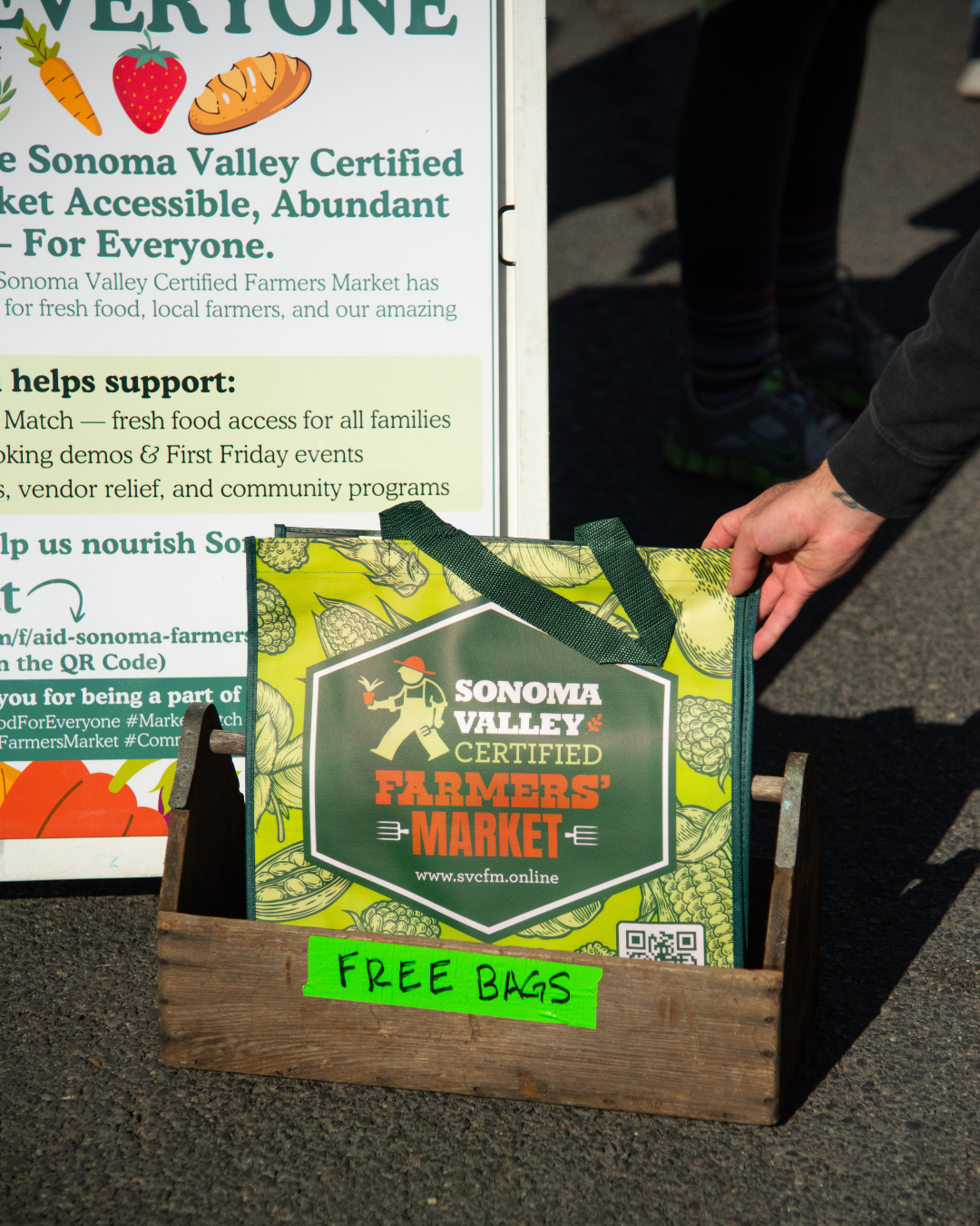 Your donation helps keep the Sonoma Valley Farmers Market thriving — a place where farmers, families, and neighbors come together to share good food and good company. With your support, we can continue providing access to fresh, local produce for all, uplift the small businesses that sustain our valley, and preserve a cherished community tradition. Every contribution, no matter the size, helps us grow a stronger, more connected Sonoma Valley.